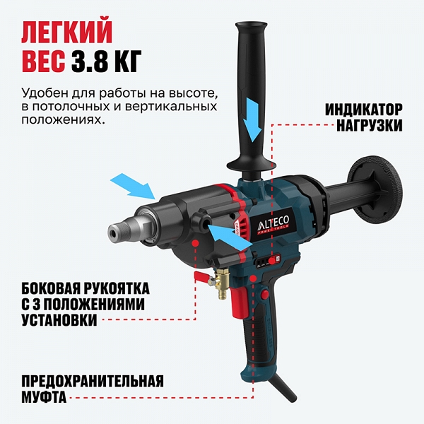 Преимущества бесщеточной дрели алмазного бурения Alteco DD 26-200 GIK BL: