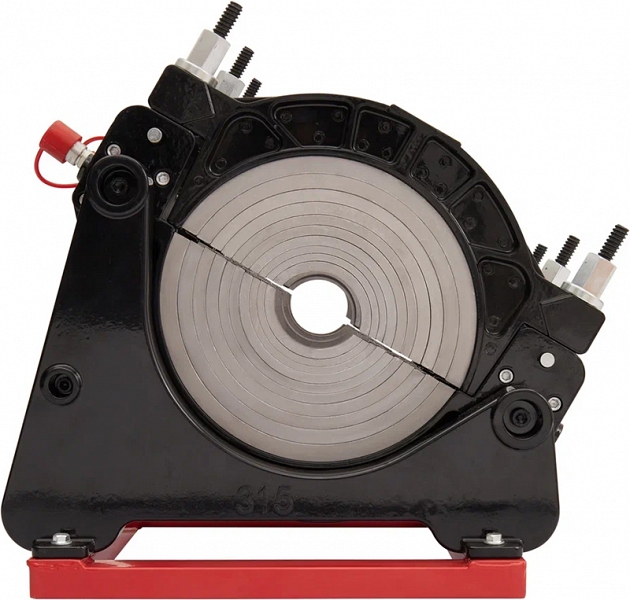 - Центраторо с гидравлическим приводом и 4-мя прочными широкими зажимами, один из которых легко может быть удален для облегчения сварки полимерных фитингов с трубами (тройники, крестовины, отводы), имеет большой запас прочности за счет качественного сплава и ребер жесткости, что позволяет сваривать полимерные трубы с любым показателем SDR